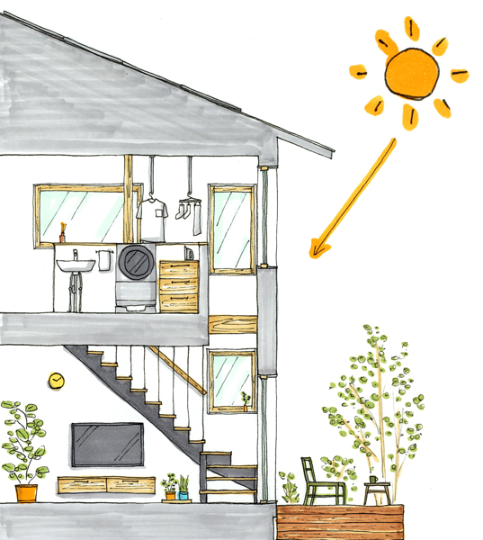 断熱・気密性能が備わり、太陽と上手に付き合う暮しは非常に快適。