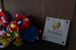 特に日射を受けにくい立地の場合は、設計段階から入念な計画が必要で、1Fへの日射取得を吹抜の窓から行うことも珍しくはありません。今回の建物では、その辺りのレイアウトがご覧いただけます。また、インテリアは素材のバランスを意識して数種類の床材を組合せており見た目も興味深い仕上りになりました。まだまだ寒さが厳しいこの時期に本当に快適な建物を是非体感してください。
