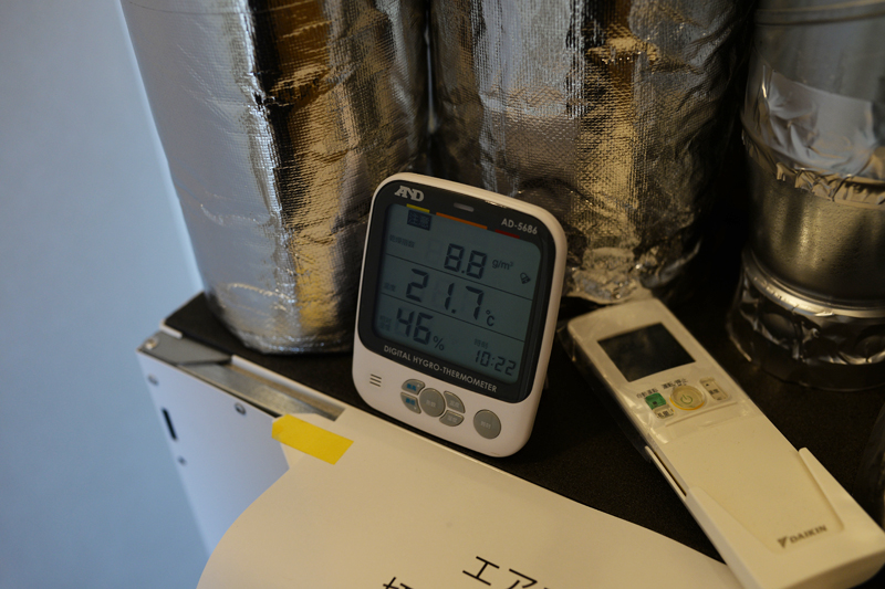 建物が完成して間もない状況で、エアコンを運転して2日目という事で、室温、湿度とも若干低めではあります。もう少し日数が経過すると室温、湿度共に少しずつ上がっていくとは思います。